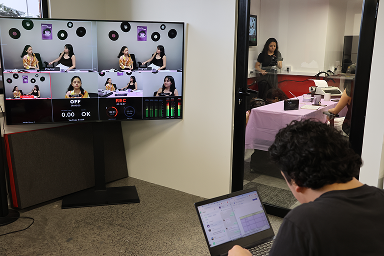 Es un espacio adaptado acústicamente para la grabación de audio y video. Cuenta con el equipo necesario para una mejor experiencia al grabar.